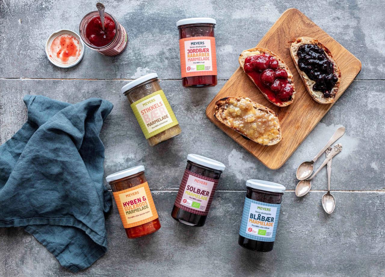 Varianterne lige nu består af solbærmarmelade, jordbær-rabarbermarmelade og stikkelsbærmarmelade. Du finder marmeladerne på hylden i din lokale Kvickly, SuperBrugsen, Meny og på nemlig.com og Wolt.