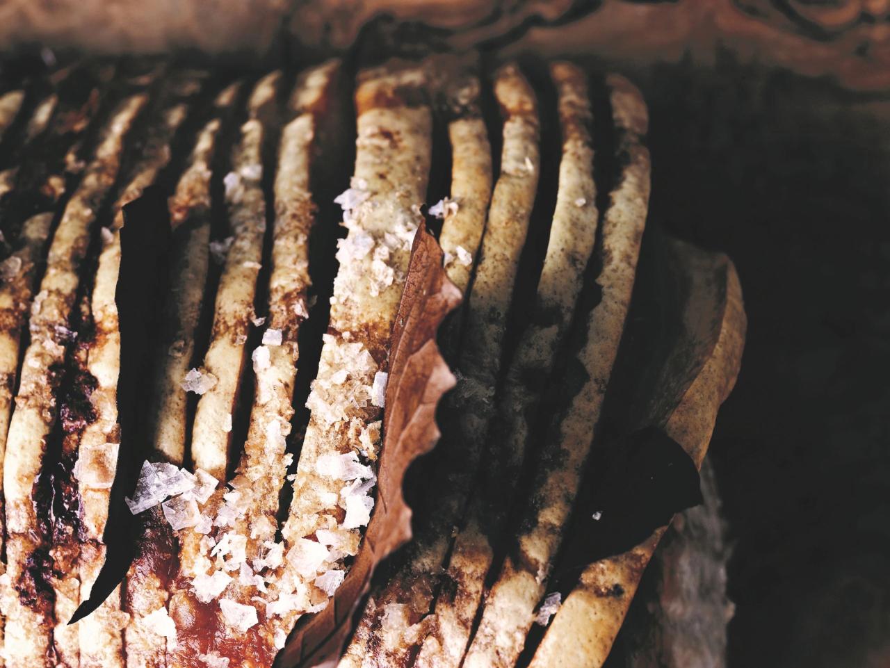 Dryp sværen af, bred den ud i en bradepande, gerne på bagepapir, drys med lidt salt og steg i ovnen ved 200 grader, indtil det er sprødt (ca. 30 min.).